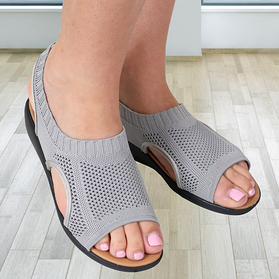 The perfect summer sandal is here. Stretchable, breathable fabric and cutouts to keep your feet cool, comfortable and stylish. No fiddly buckles; simply slip on, and pull the heel strap over your heel and you’re ready to go!