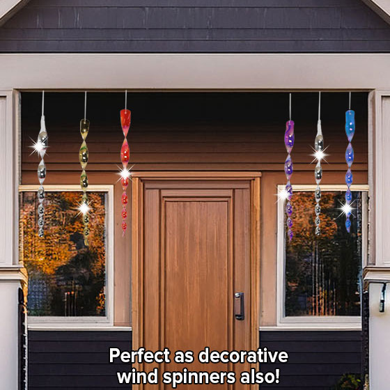 These colourful, reflective, bird repeller sticks are a great way to help deter birds and other animals from your garden. Simply hang each individual stick wherever you need and they will twist in the wind and reflect the light.