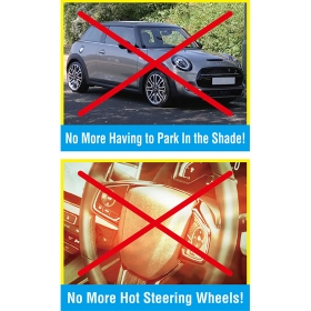 Our compact Umbrella Sun Shade is the most compact sun shade that easily fits into your glove box, door side pocket and more. Simply pop it open and place it in your windshield. Blocks heat & UV rays to keep your car cool. Comes with a bonus carry case.