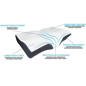 LOWER SIDE CONTOUR - Cervical spine support for stomach sleepers.