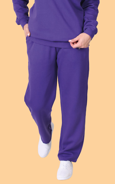 Matching pull-on fleece pants with full elastic waist, side seam pockets and gently tapered leg. Cotton/Polyester knit fleece. Machine wash. Approx length; Inseam – 74cm (29”).