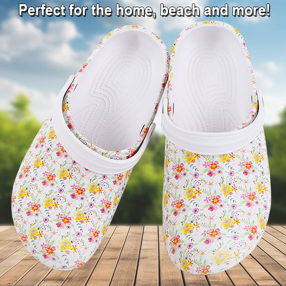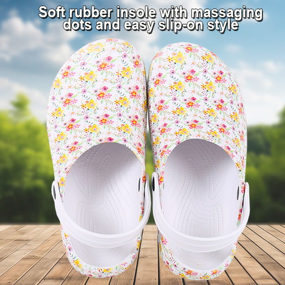Slip into all-day comfort with these lightweight floral clogs. Designed with a soft rubber insole with massaging dots and easy slip-on style, they offer gentle support for errands, garden strolls, or relaxing at home.