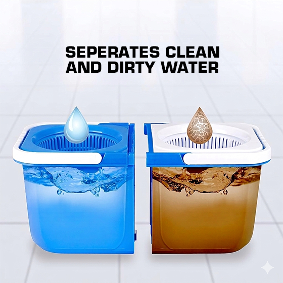 • Hygienic Dual-Bucket System: The unique design separates clean and dirty water into two distinct compartments. This prevents cross-contamination, ensuring your floors are fully cleaned from bacteria and grime.