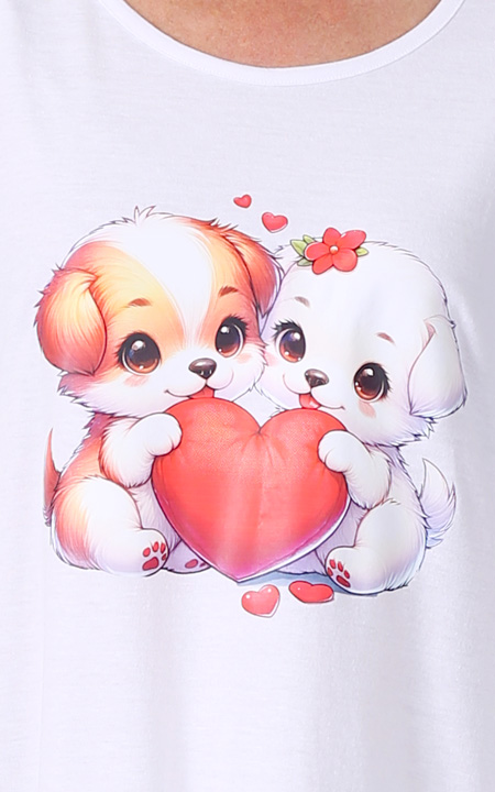 Available in Blue Moon, Lilac Flowers and White Puppy, in selected sizes from Small to 5X.