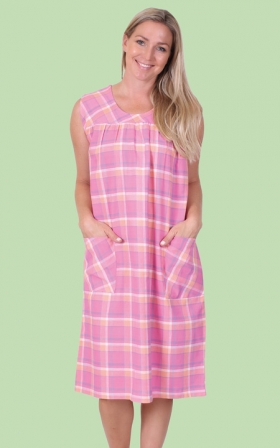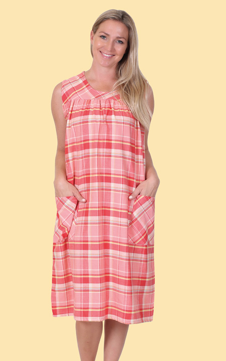 Cool sleeveless slip-on styling with patch pockets. Woven cotton. Machine wash & dry.