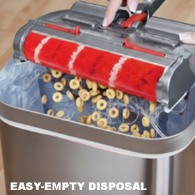 The self-cleaning brushroll helps prevent hair wrap, making maintenance simple and mess-free. Features a low-profile design that lays flat, easily reaching under furniture, while the easy-empty disposal keeps cleanup hygienic.