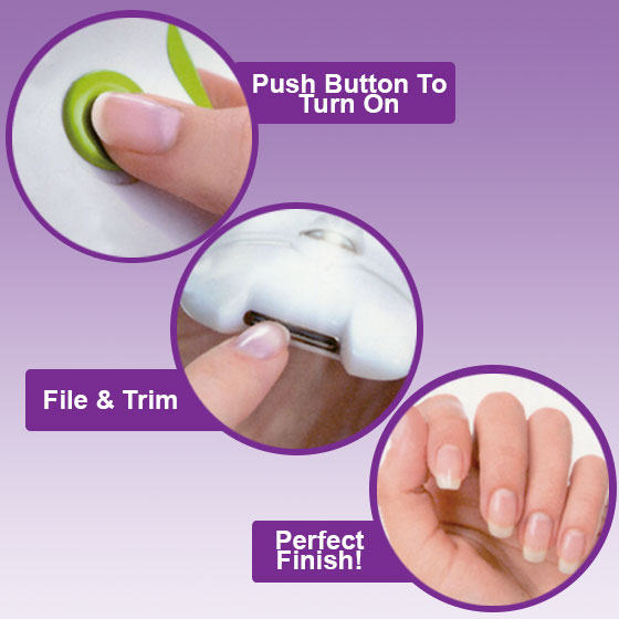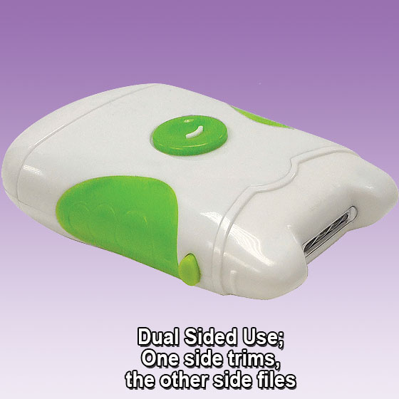 Compact, lightweight and easy to use. Rotating tungsten steel blades for filing, sculpting and trimming; helps to smooth out rough and uneven nails. Also features a built-in LED light.