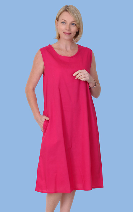 The perfect lightweight, woven cotton, summer dress in vibrant summer solid colours. Keyhole back opening and round neckline. Machine wash. 100% Woven Cotton.