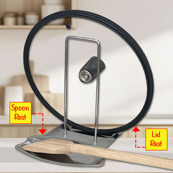 Say goodbye to messy countertops with this sleek and durable metal spoon and lid rest. Designed to hold both your cooking spoon and pot lid in one convenient place, it keeps drips, splatters, and spills off your bench while you cook.
