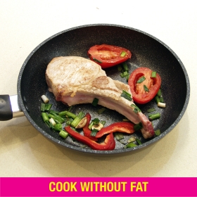 StoneEdge pans are a solid stone surface that stores heat and gradually releases it so you to cook at lower temperatures. Almost nothing sticks and virtually no butter, oil, or grease is required so all you taste is the healthy natural flavour of the food. To clean, just one wipe, and you’re done! StoneEdge cooks on gas, induction, glass-top and electric.
