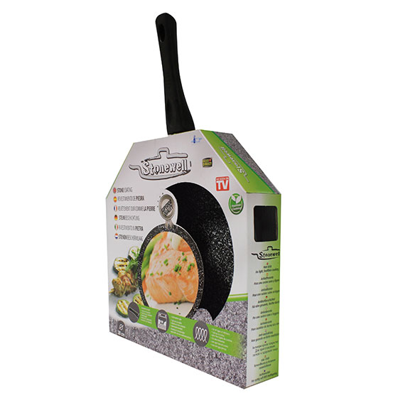 This 28cm pan from Stonewell brings 100% non-stick, scratch-resistant frying pans. It does not require butter, oil or grease ensuring light and healthy cooking. Your culinary pleasure is also enhanced with the benefit of the pan locking in essential natural juices as the natural stone prevents the food from drying out enriching the natural flavours.