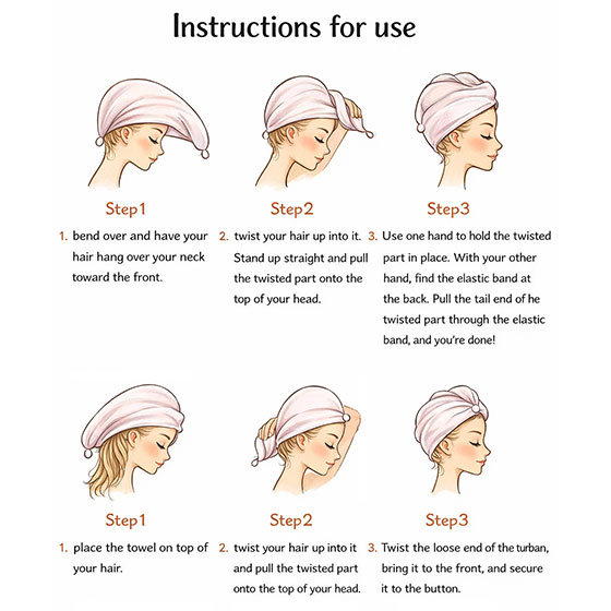 Designed for all hair types and lengths, it twists up neatly and fastens securely with a simple loop-and-button closure, so you can get ready in comfort.