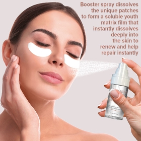 - Booster spray dissolves the unique patches to form a soluble youth matrix film that instantly dissolves deeply into the skin to renew and help repair instantly!