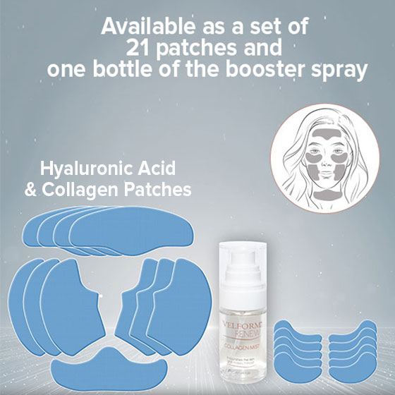 Unlike other products that sit on the skins surface, Velform Renew features unique patches that dissolve into the skin when sprayed with the Renew booster, releasing collagen fibres and hyaluronic acid deep into the skin with instant visible results.